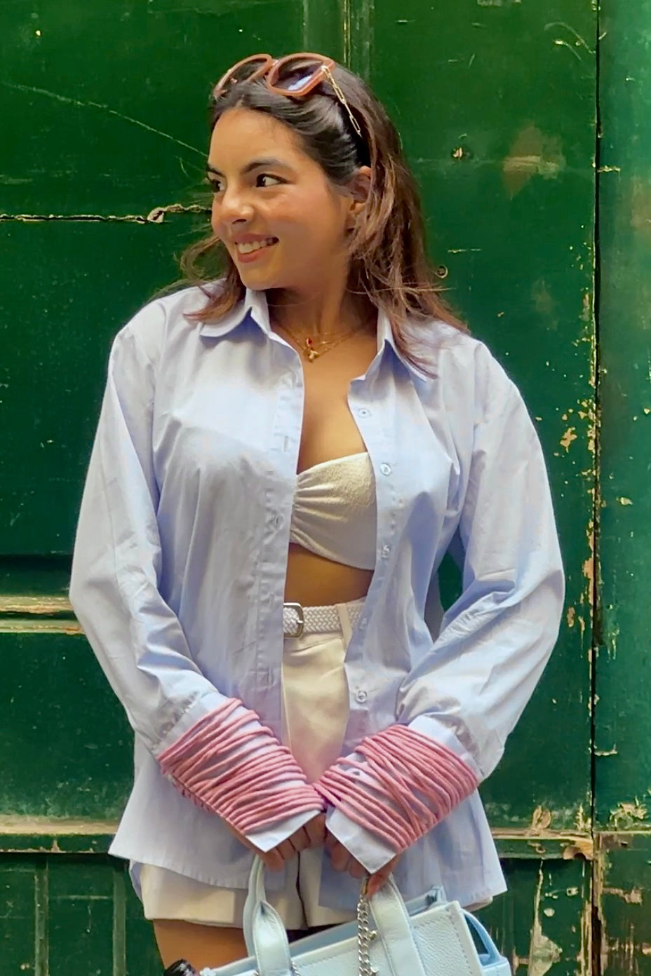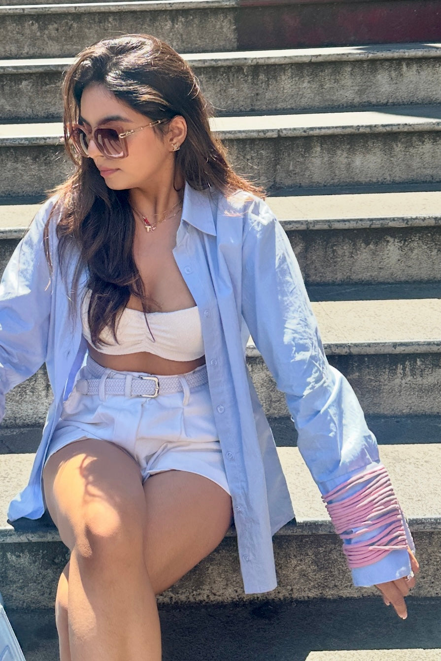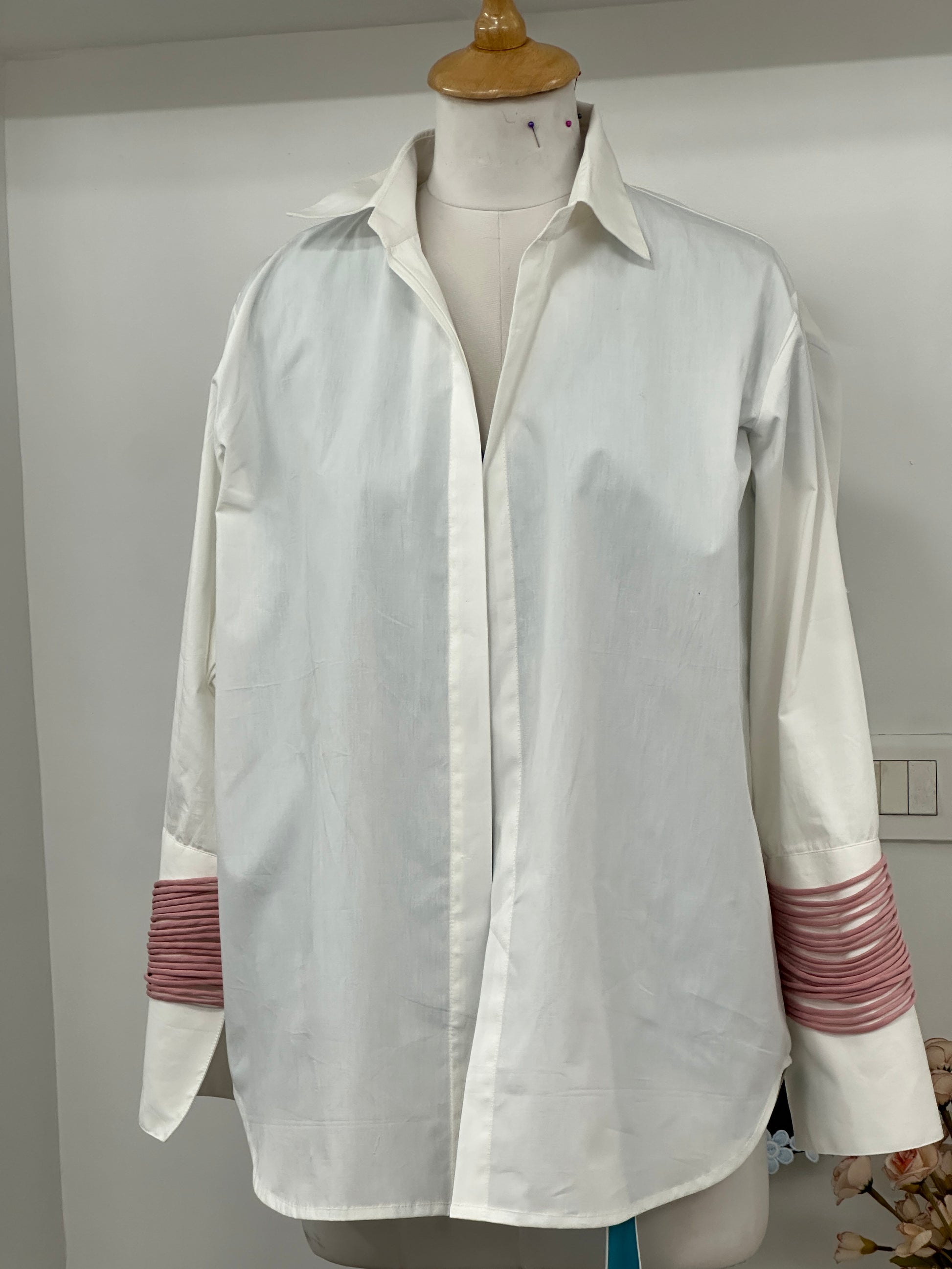 Cotton poplin shirt with banana crepe handmade strings