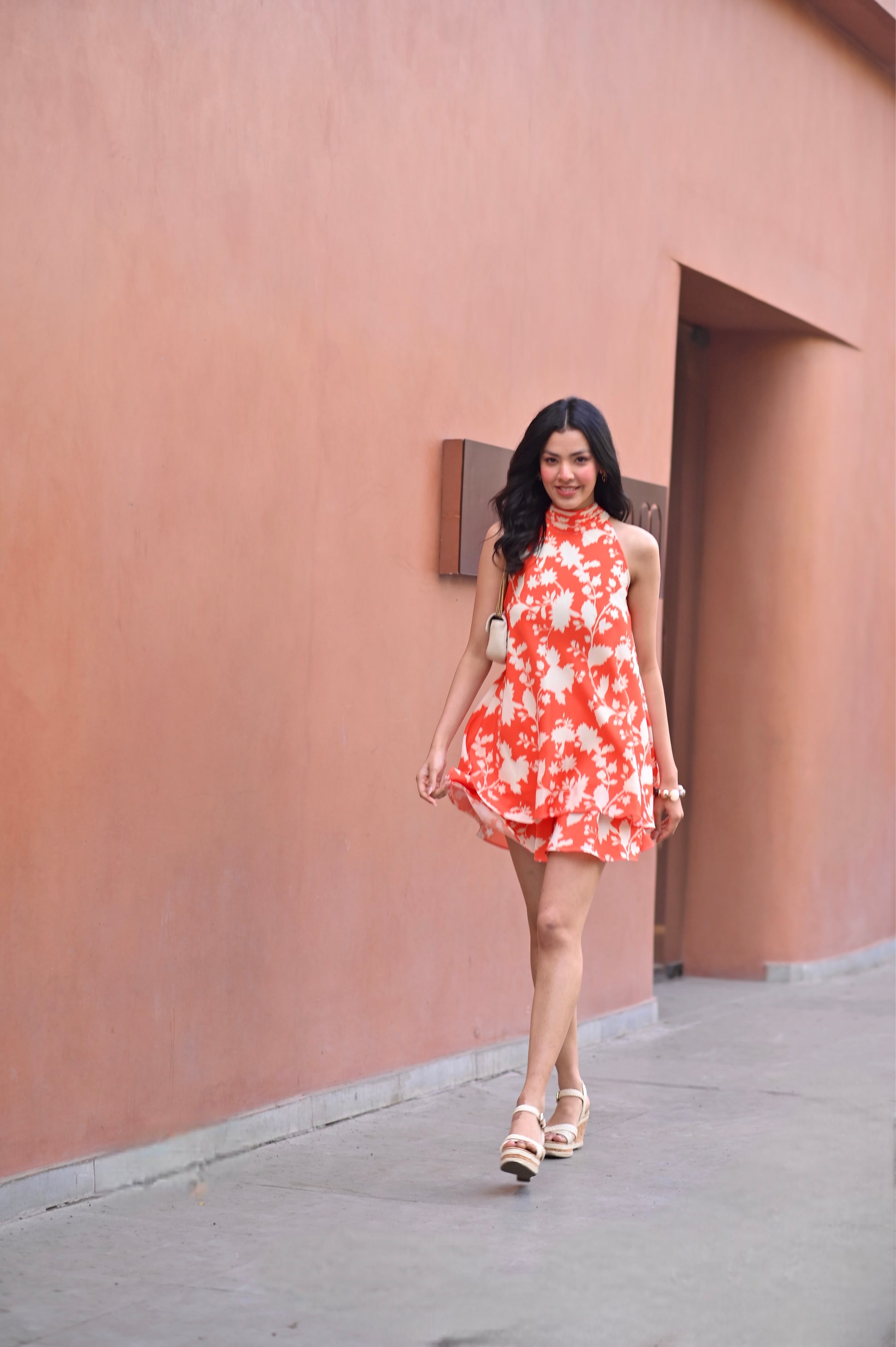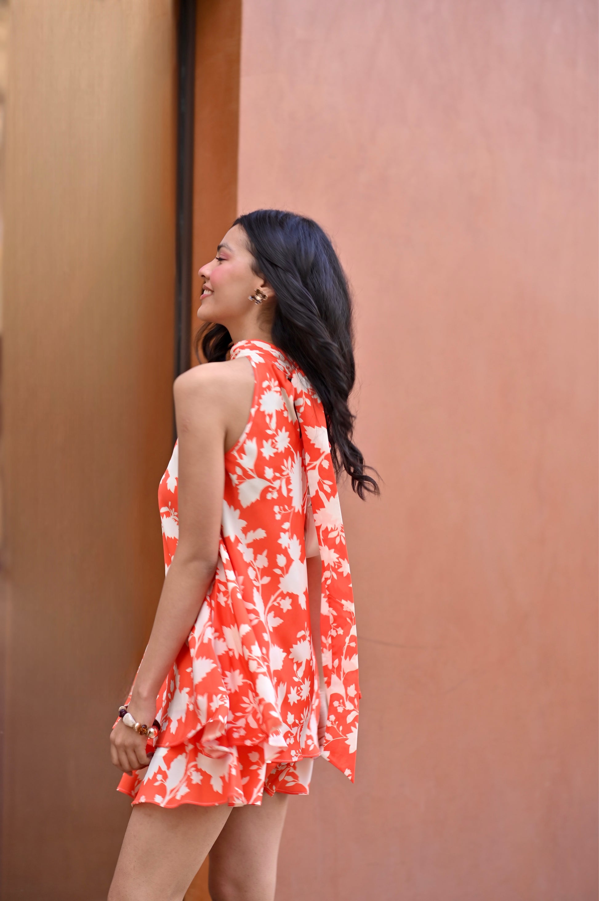 Amira crepe flared top and skirt set with tie detailing on back neck
