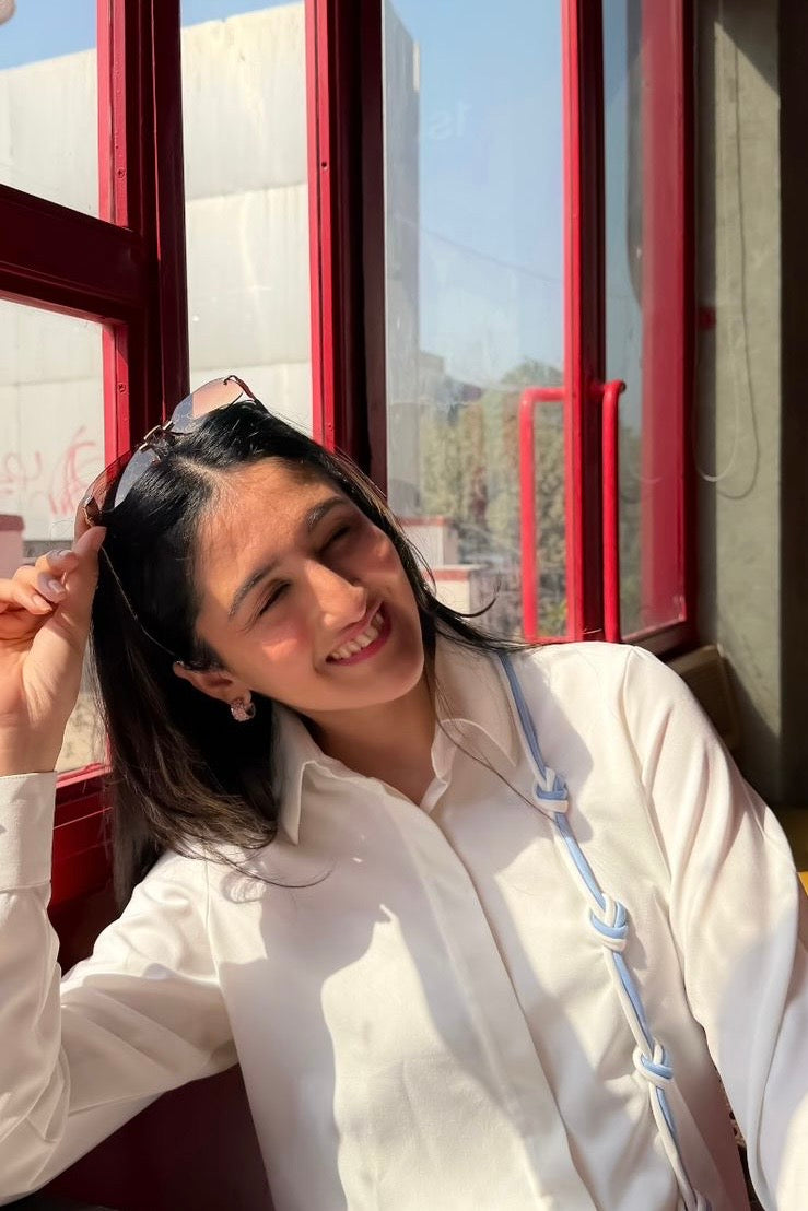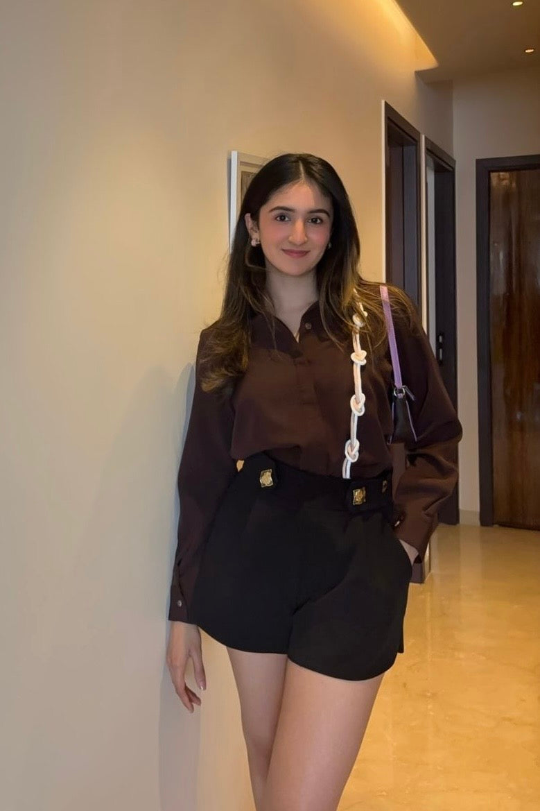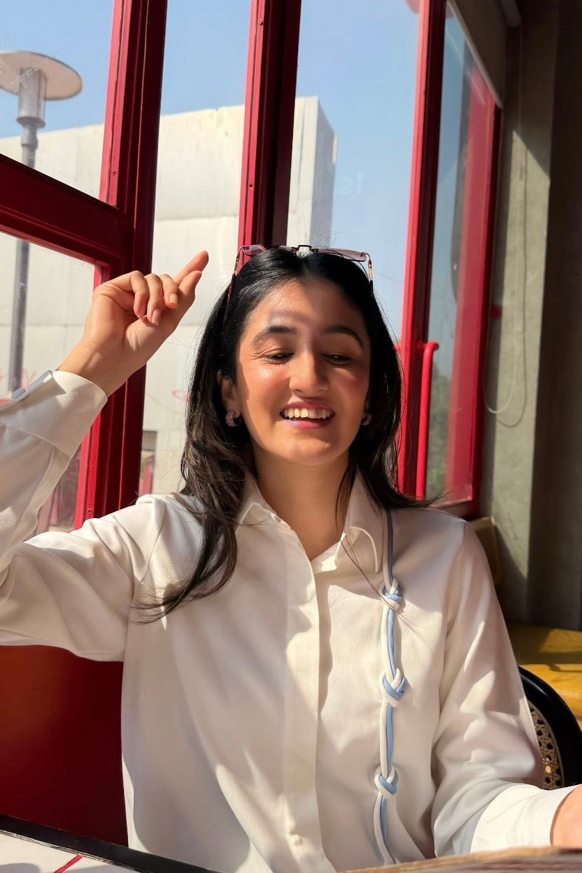 Banana crepe regular fit shirt (formal) with a handmade knot detail.