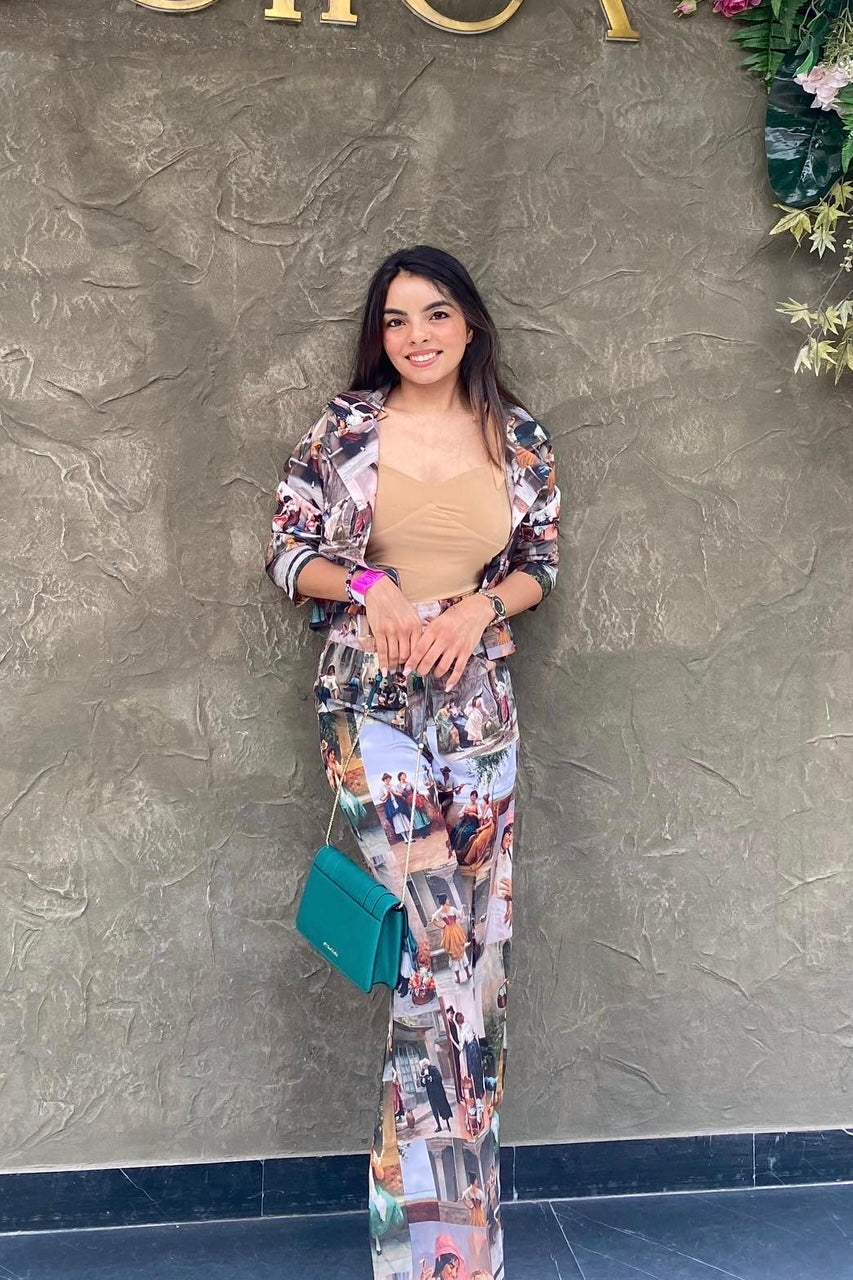 Italian crepe top and pant printed set!