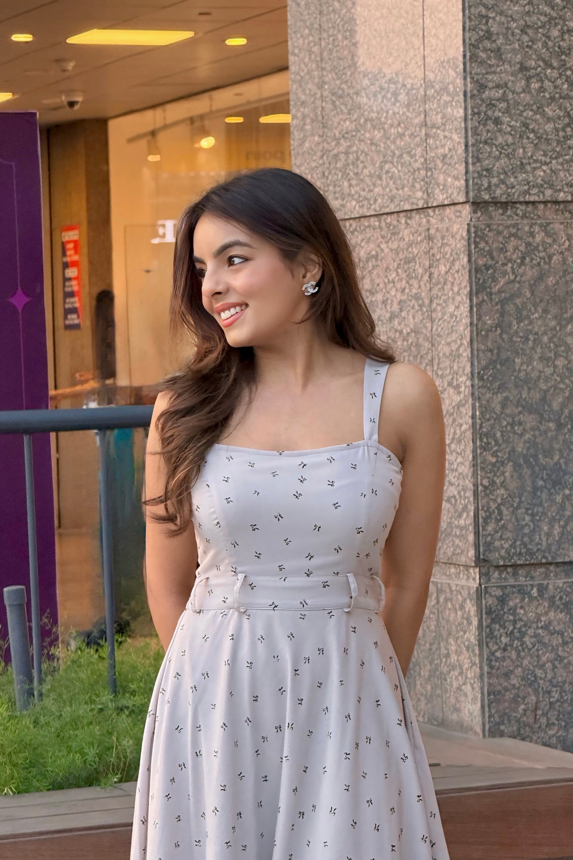 Muslin cotton printed midi dress with lining
