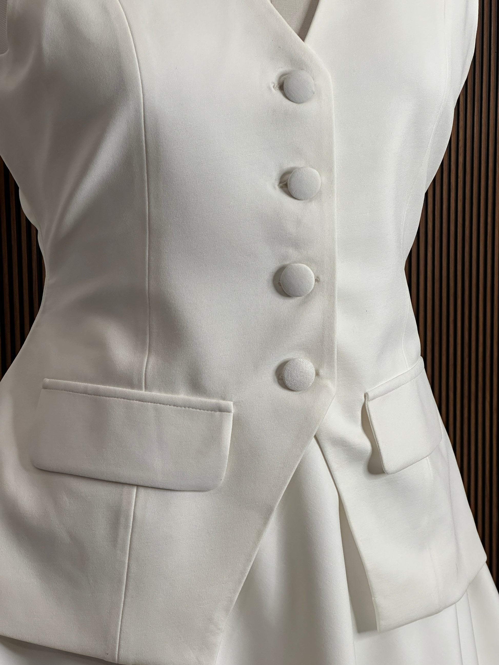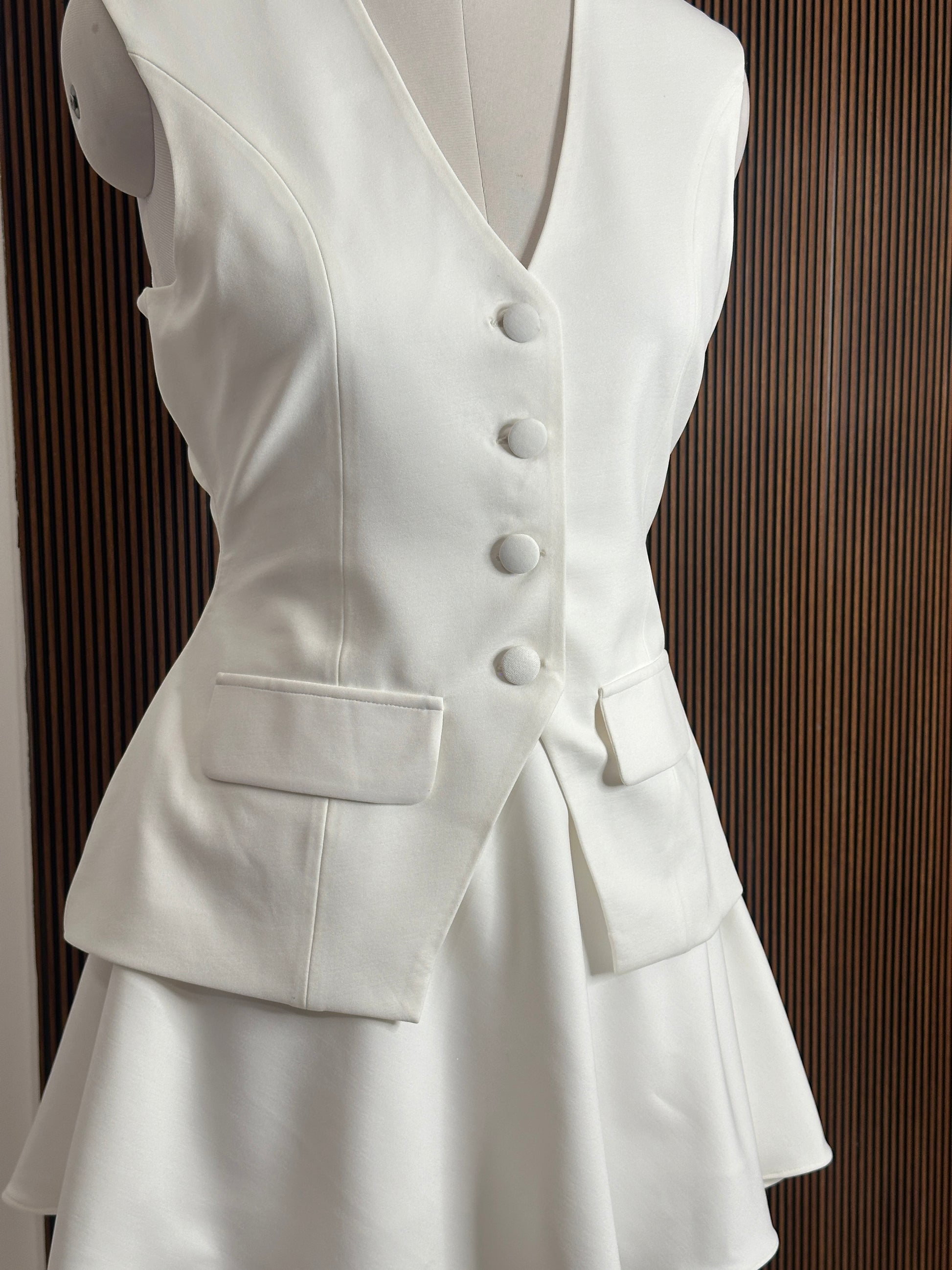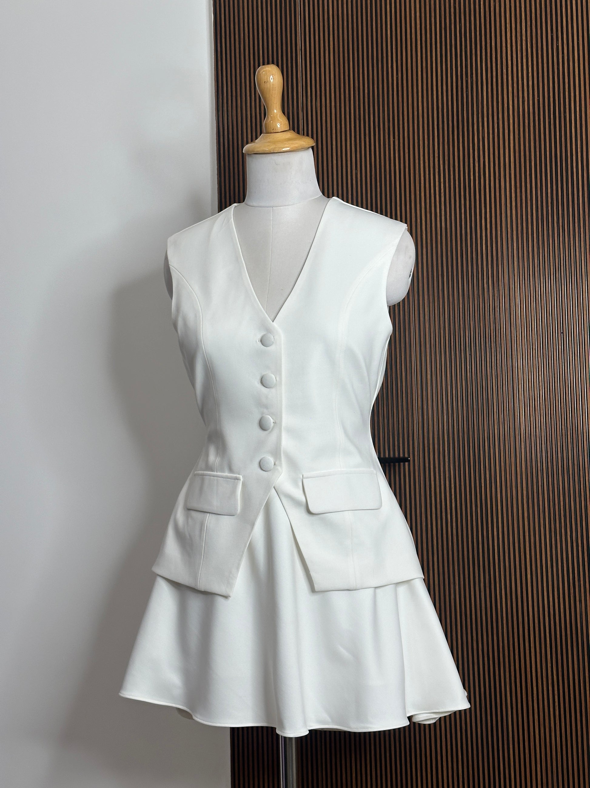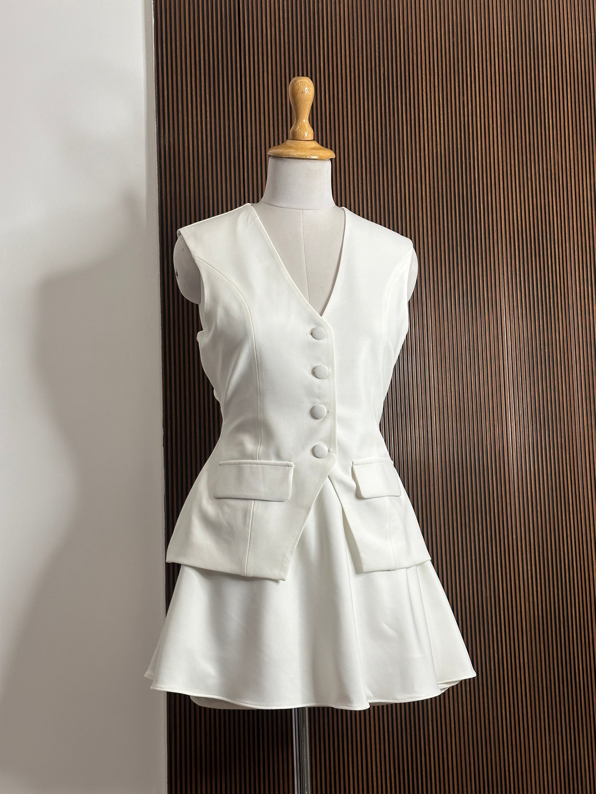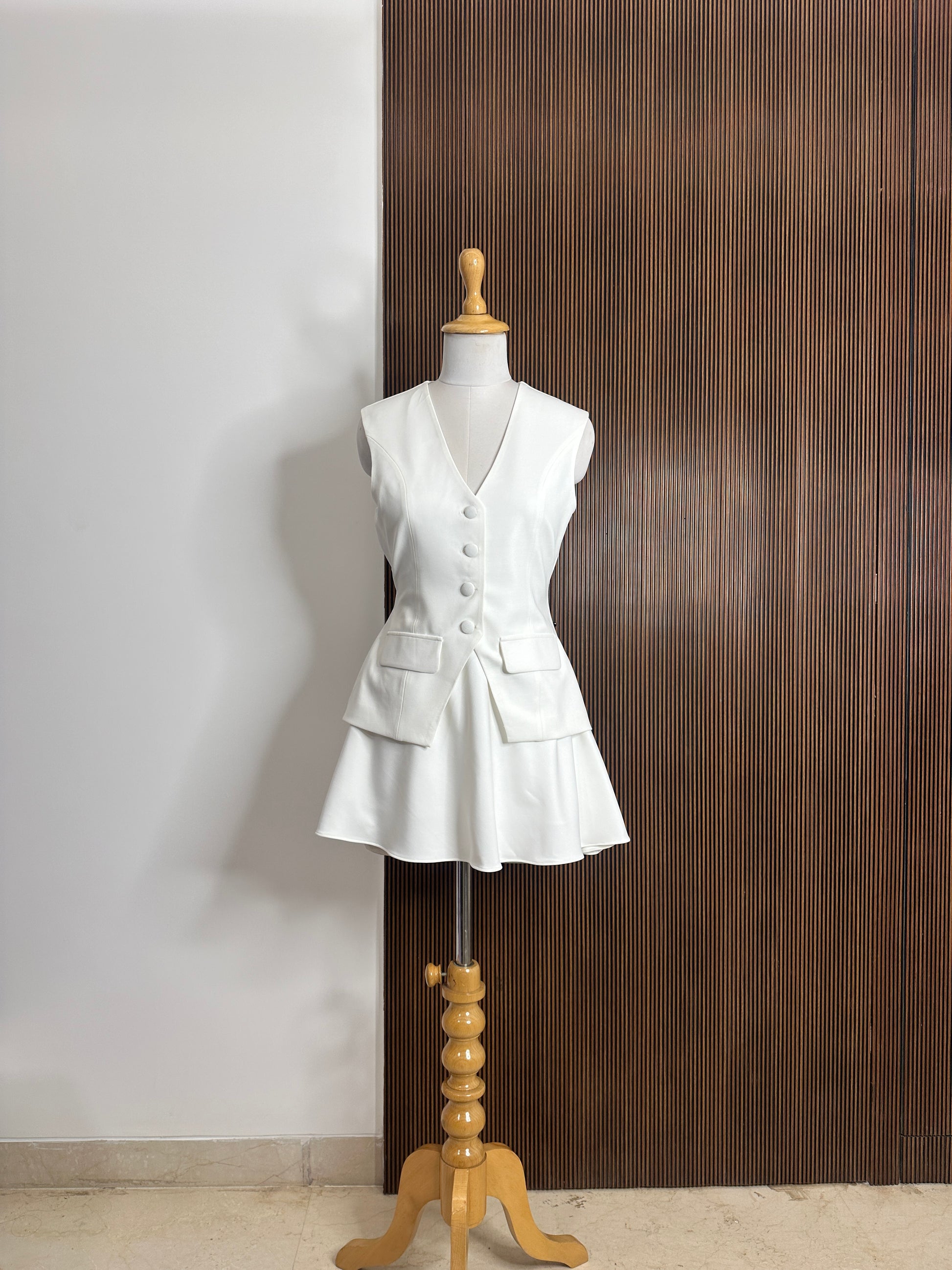 Skirt and waist coat set with fabric buttons